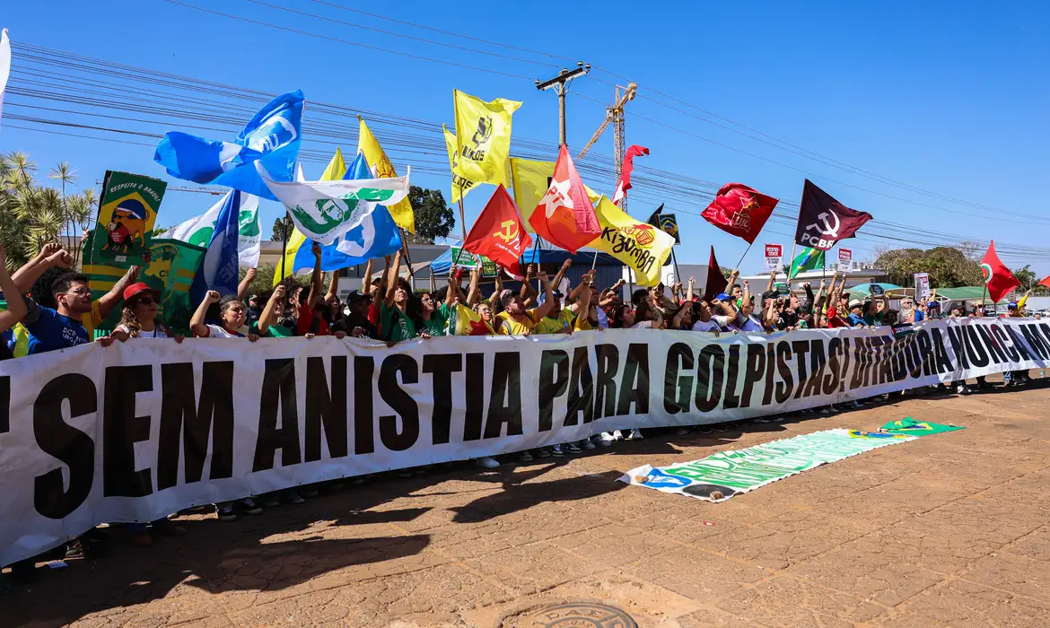 Em ato pró-soberania, manifestantes queimam bandeira e boneco de Trump